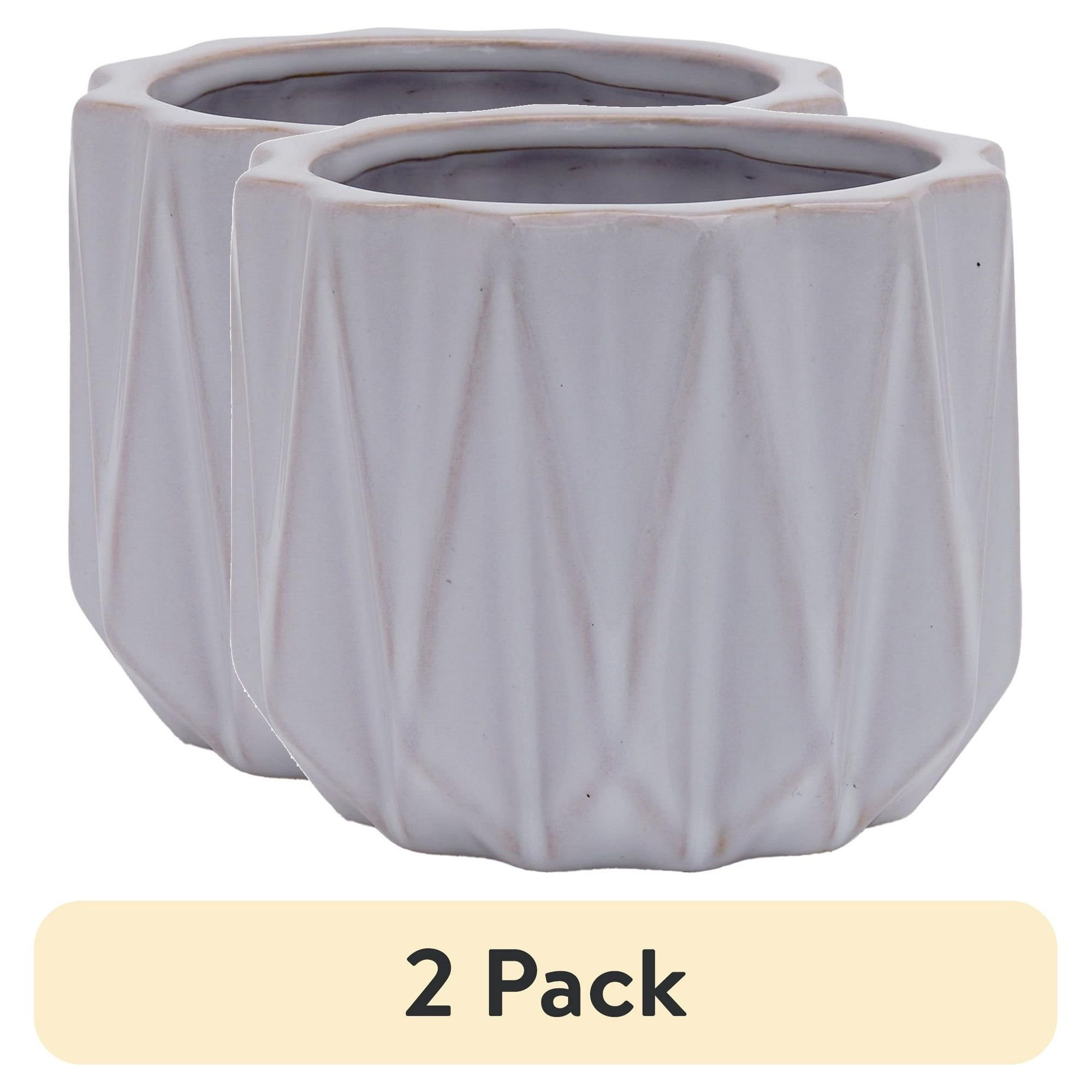 (2 pack) Pottery 5" Devi Round Ceramic Planter, White (2 pack) Pottery 5" Devi Round Ceramic Planter, White