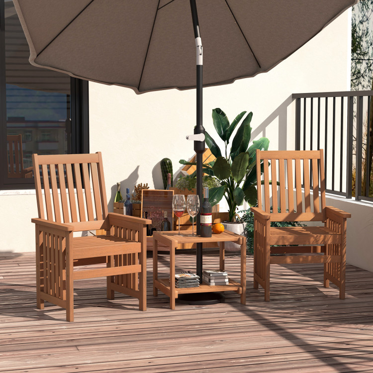 4.Wide Outdoor Application: With natural and elegant appearance, this 3-piece patio wood chair set will be ideal for multiple outdoor occasions like poolside, front porch, backyard and so on.
