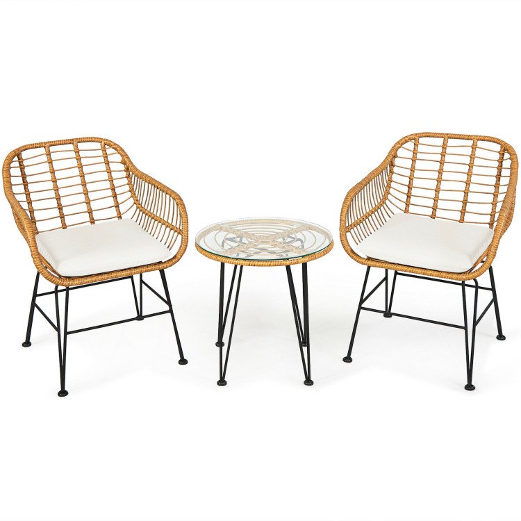 3 Pieces Rattan Furniture Set with Cushioned Chair Table 3 Pieces Rattan Furniture Set with Cushioned Chair Table 3 Pieces Rattan Furniture Set with Cushioned Chair Table