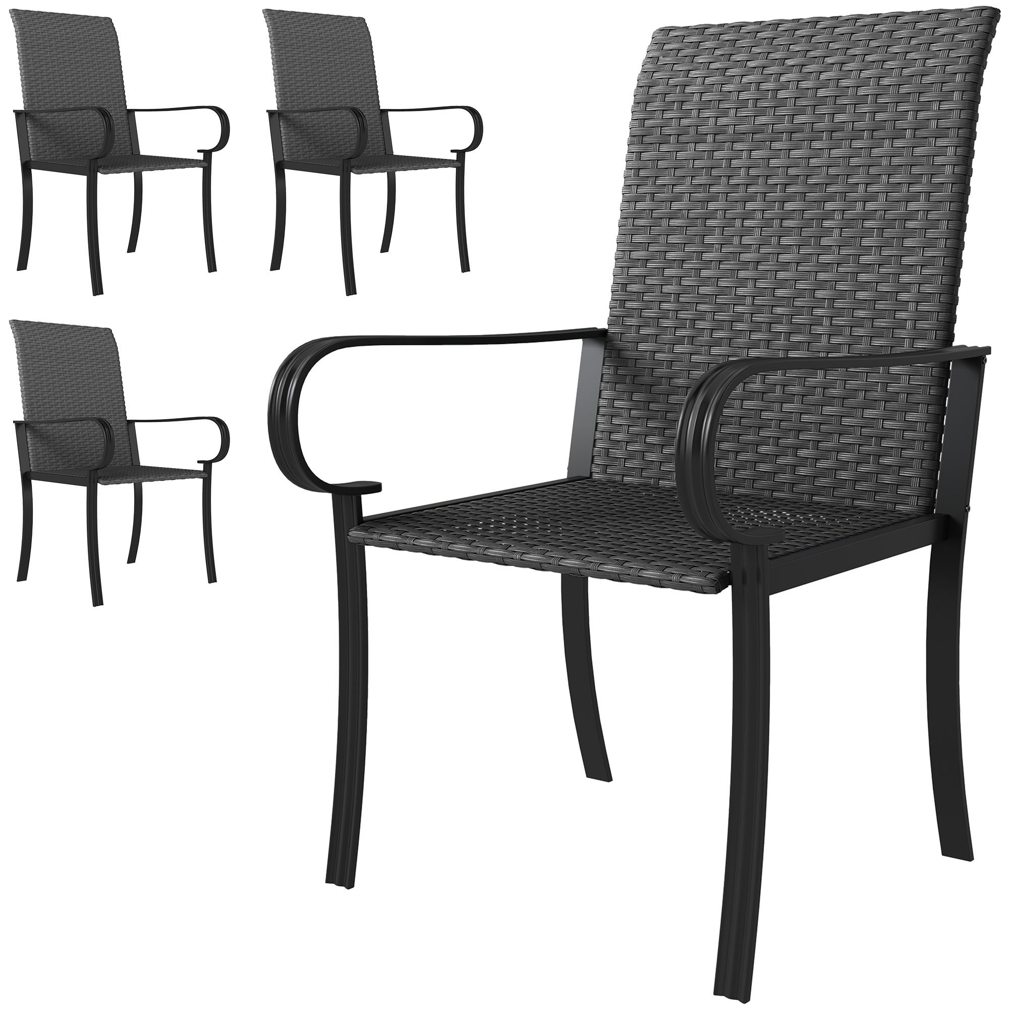 4 Piece PE Rattan Patio Dining Chairs with Steel Frame, for Garden, Backyard, Pool Side, Porch, Black 4 Piece PE Rattan Patio Dining Chairs with Steel Frame, for Garden, Backyard, Pool Side, Porch, Black 4 Piece PE Rattan Patio Dining Chairs with Steel Frame, for Garden, Backyard, Pool Side, Porch, Black