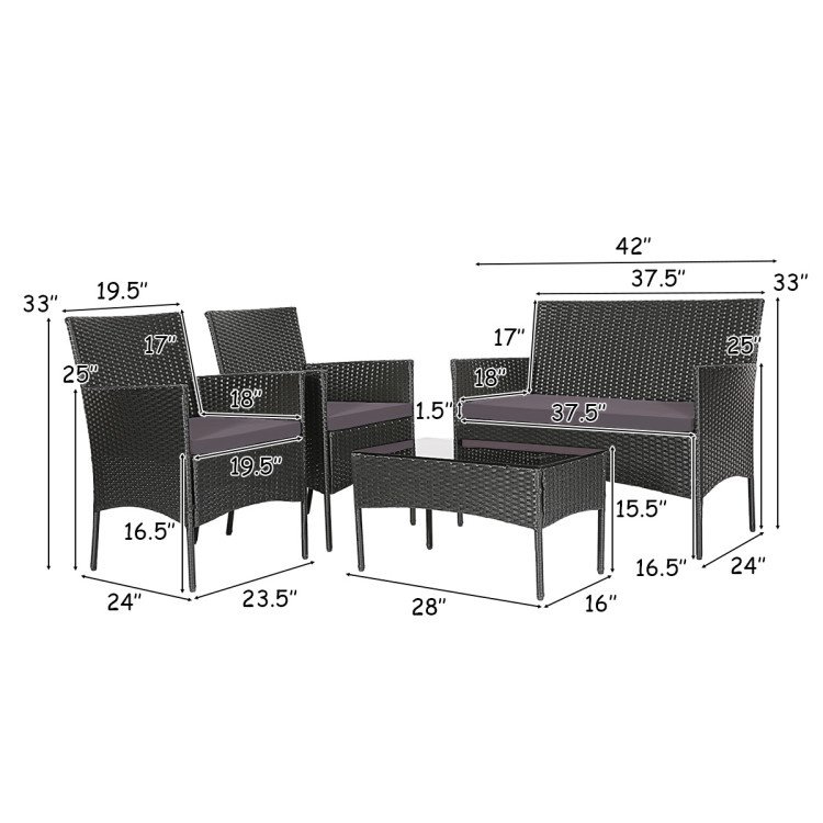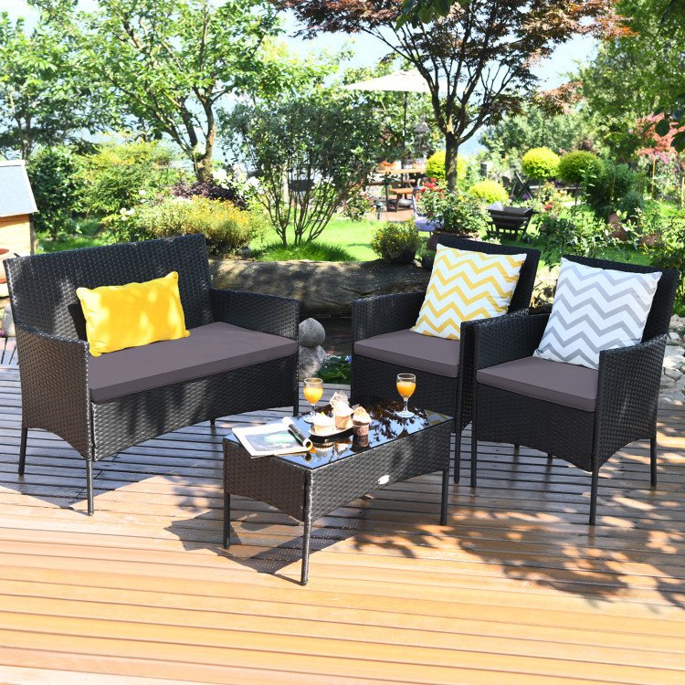 4 Pieces Patio Rattan Cushioned Sofa Set with Tempered Glass Coffee Table 4 Pieces Patio Rattan Cushioned Sofa Set with Tempered Glass Coffee Table 4 Pieces Patio Rattan Cushioned Sofa Set with Tempered Glass Coffee Table