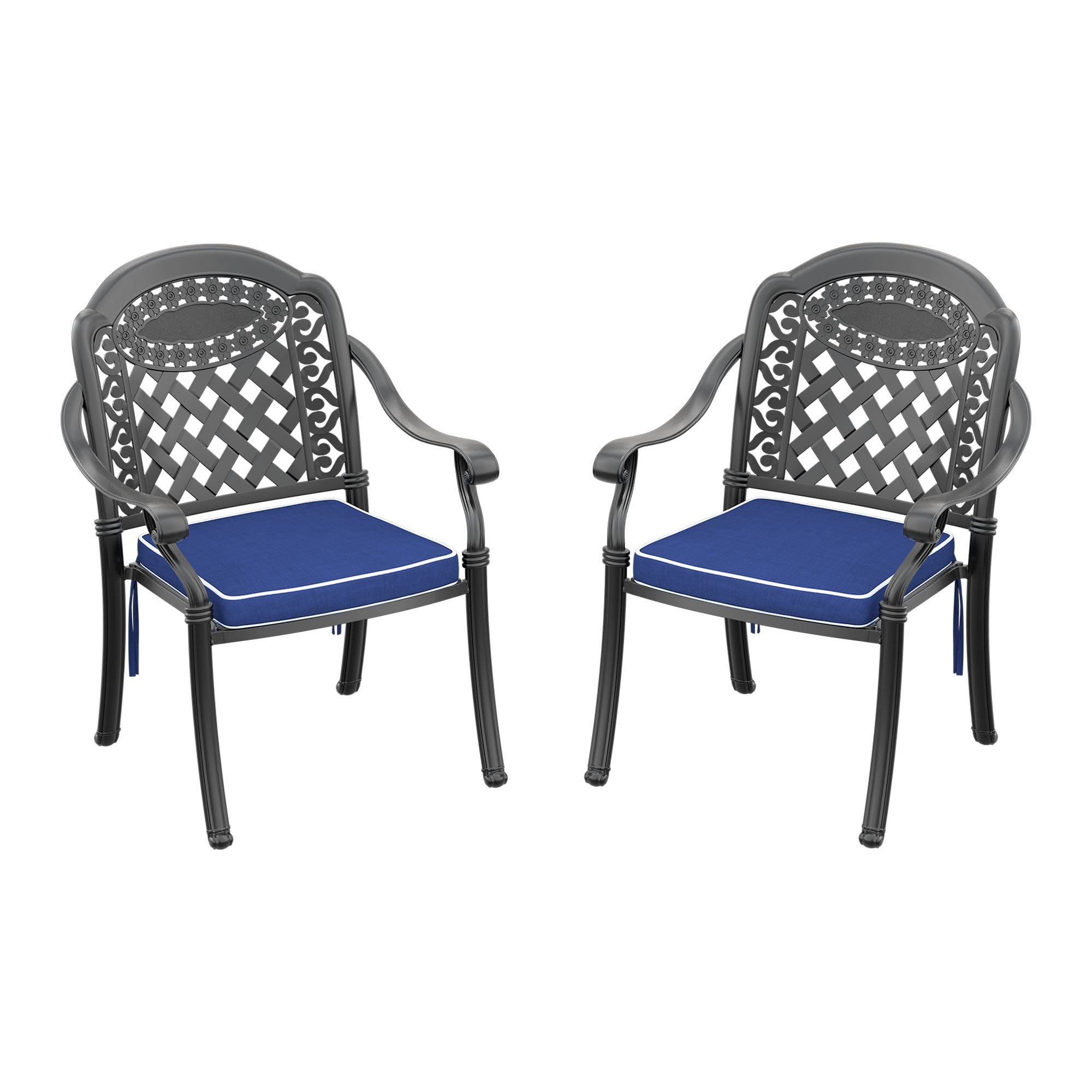 Cast Aluminum Patio Dining Chair 2PCS With Black Frame and Cushions In Random Colors Cast Aluminum Patio Dining Chair 2PCS With Black Frame and Cushions In Random Colors Cast Aluminum Patio Dining Chair 2PCS With Black Frame and Cushions In Random Colors