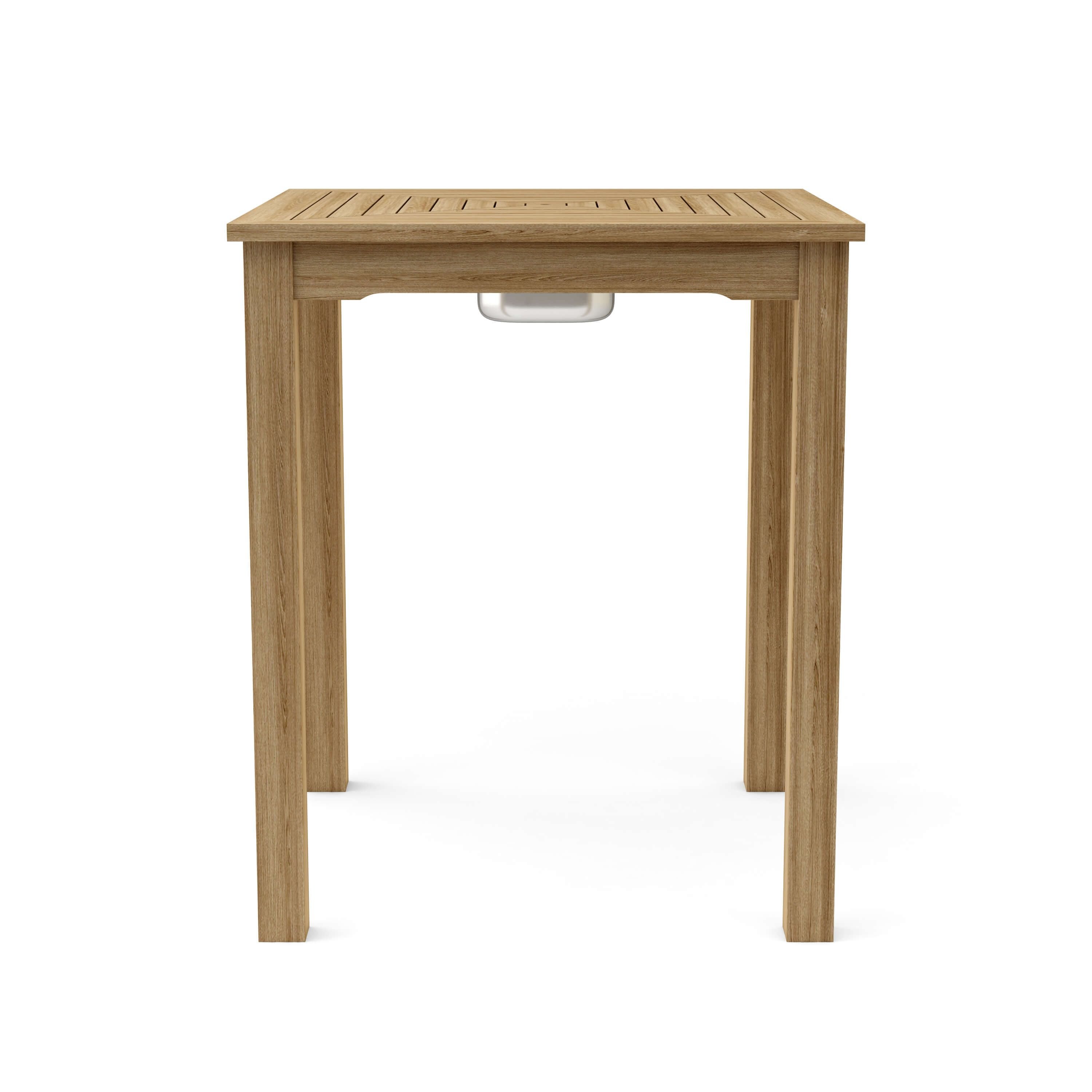 The Chatsworth Ice Chiller Bar Table is the elegant and perfect furniture addition for your backyard. The table features a stainless steel bucket in the middle for easy storage of ice cubes and cold beverages. Sure to complement any patio setting, this Bar Table can be mixed and matched with existing bar chairs collection at Anderson Teak for sitting variety. This sturdily constructed bar table comfortably seats 2-4 people. Invite your friends and family to enjoy the gathering of the evening.
