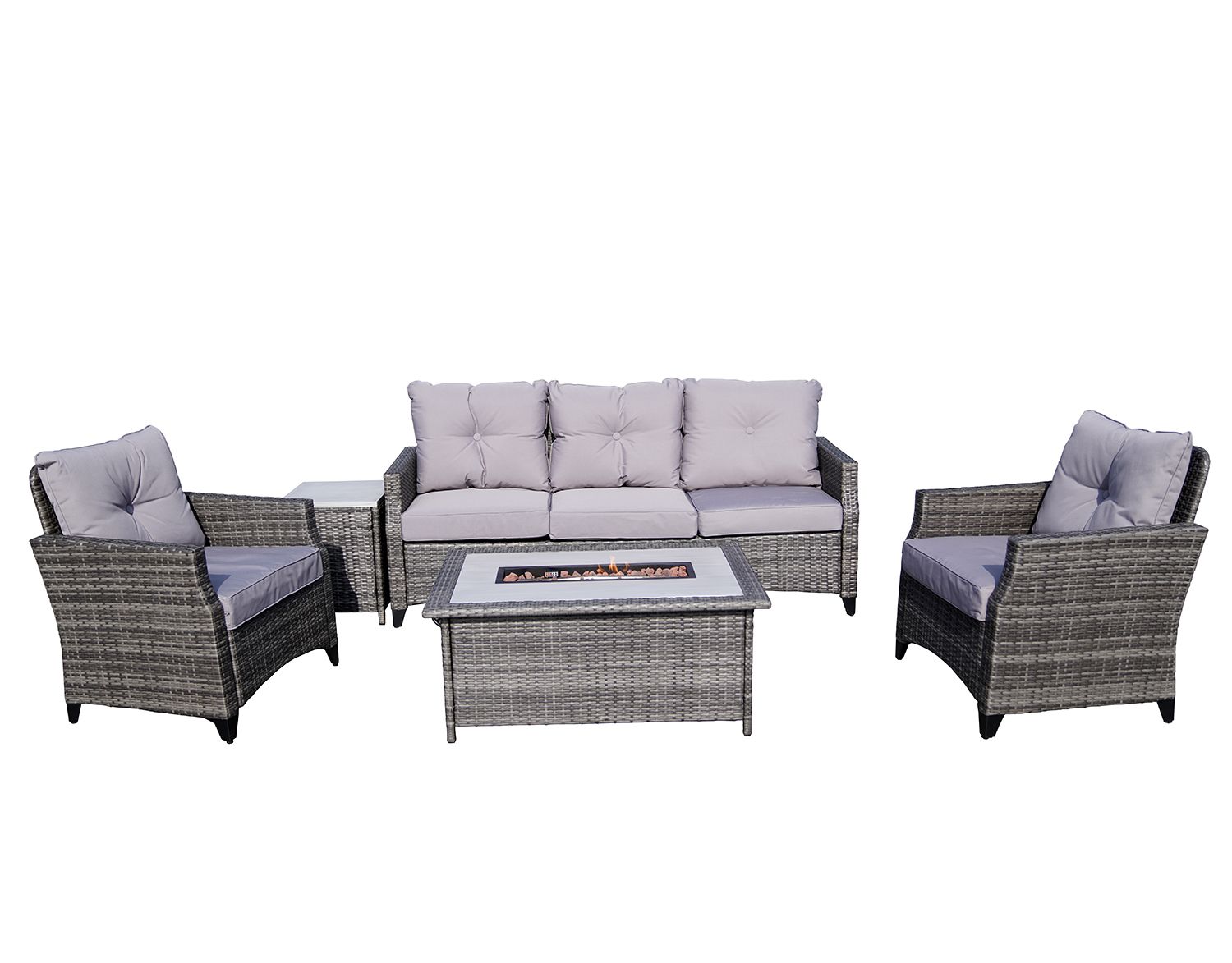 Direct Wicker Gray Wicker Sofa Set Outdoor Furniture Conversation Set with Firepit Table