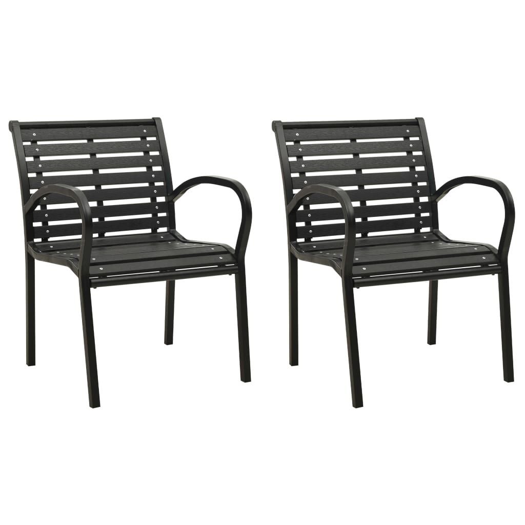 Garden Chair Set of 2 Black Steel with powder-coated finish, WPC Garden Chair Set of 2 Black Steel with powder-coated finish, WPC Garden Chair Set of 2 Black Steel with powder-coated finish, WPC