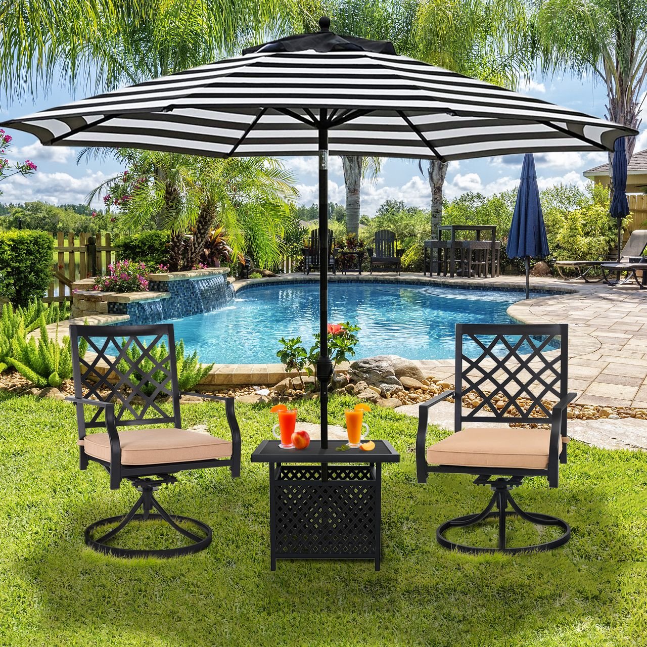 1.Patio Umbrella Side Table: MEOOEM outdoor umbrella side table, the sturdy steel frame increases the stability of the table. You can put drinks and snacks on the table, you can also use the umbrella side table as your outdoor decoration.