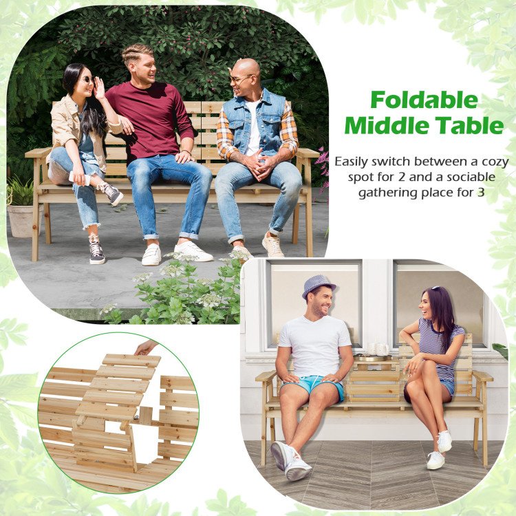 Outdoor Fir Wood Bench with Foldable Middle Table