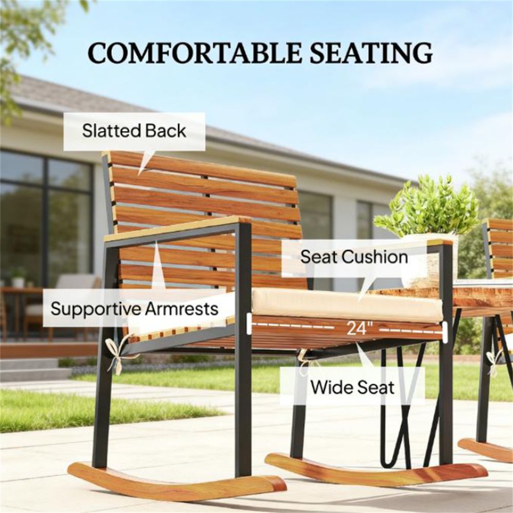 - Materials: Acacia Wood, Steel, Polyester, Foam, PP Cotton