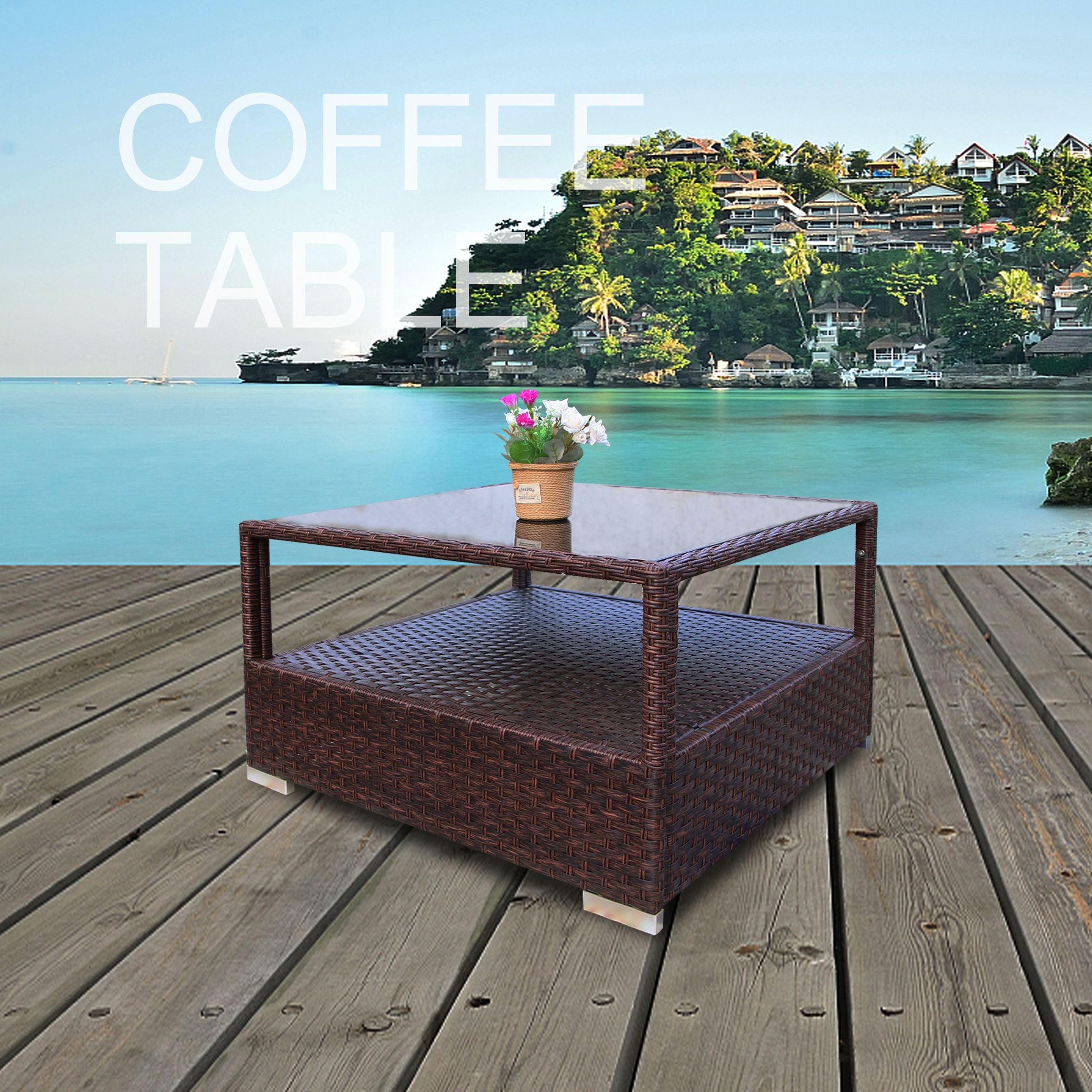 [High Quality Material]: outdoor patio wicker coffee table with brand new PE rattan wicker, high quality stainless steel of screws, UV-Resistant for 2000 hours, Rust-Resistant over 2000 hours, all-Weather patio rattan furniture.[Multiple Functions]: outdoor rattan furniture coffee table is suitable for outdoor/indoor terrace, lawn, yard, backyard, porch, garden, poolside and balcony.[Easy to assemble and Maintain]: outdoor coffee table with the assembly instruction, it is easy to assemble and maintenance.[Free combination]: outdoor coffee table suits perfectly to outdoor sofa, chair set, chaise lounger.[Extra Storage] Double Levels Design for extra spaces