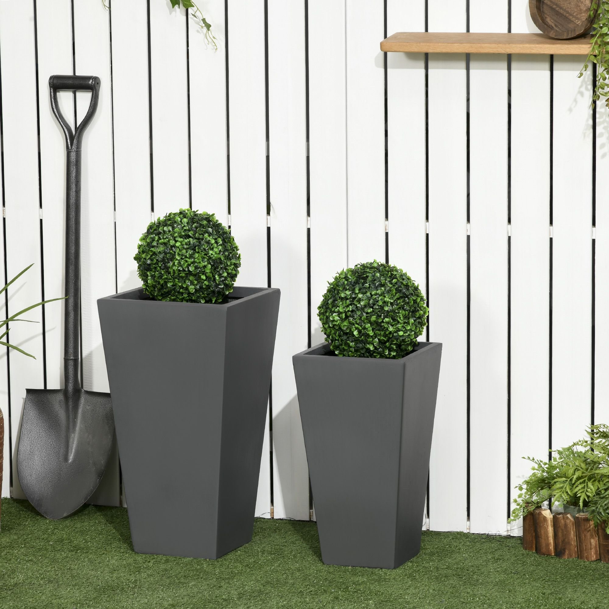 Outsunny offers extra large planters that make landscaping easy. With two sizes that stack into a convenient package, this set offers the modern, simple style of concrete with lightweight, easy-to-carry magnesium oxide. No more worrying about water logging; with a rain-draining hole found on the bottom, our two large planters mitigate excess moisture. Placed on the patio, porch, courtyard, or garden, they offer enough space for your favorite flowers, shrubs, or even a tree.