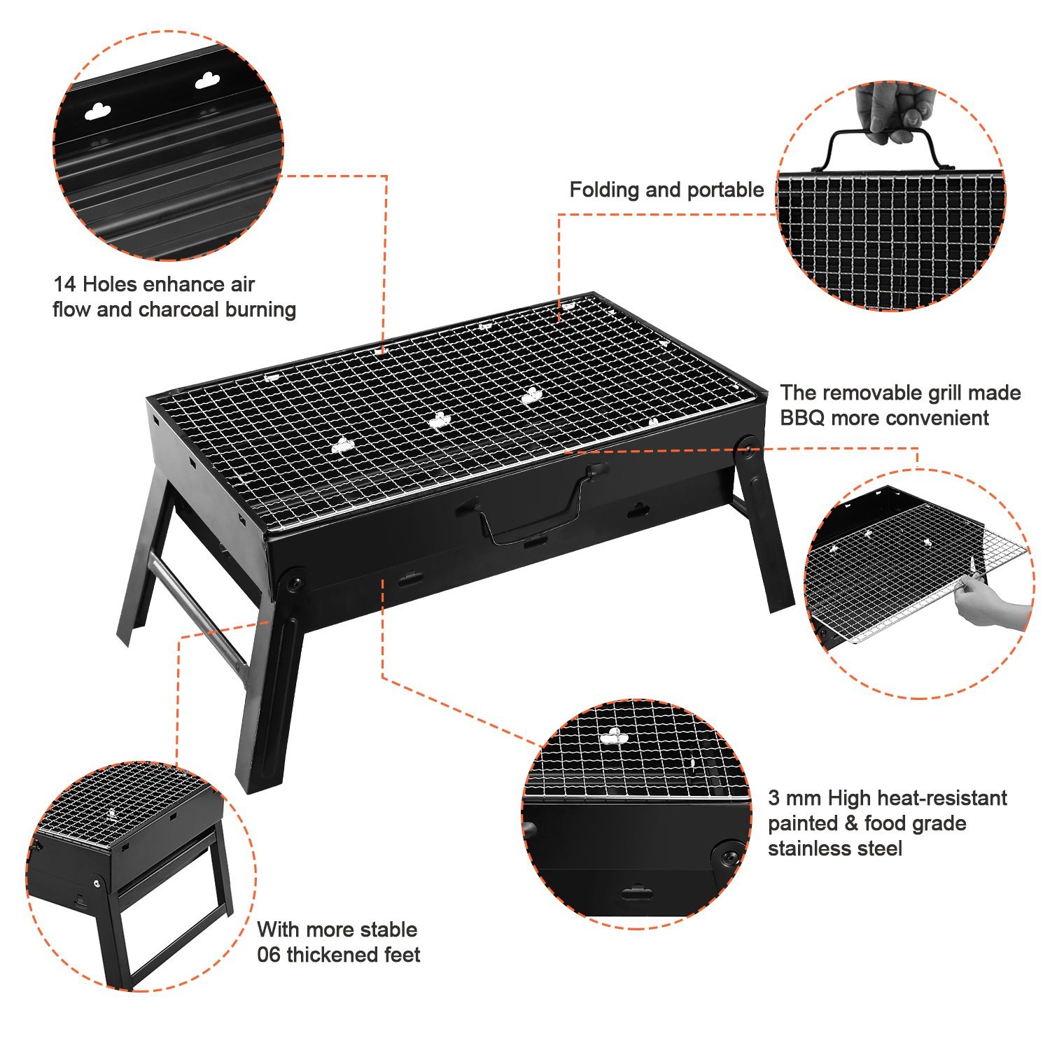 1.Foldable & Portable, Easy To Set Up, Holes Accelerating Charcoal Burning, Suit For 4-6People