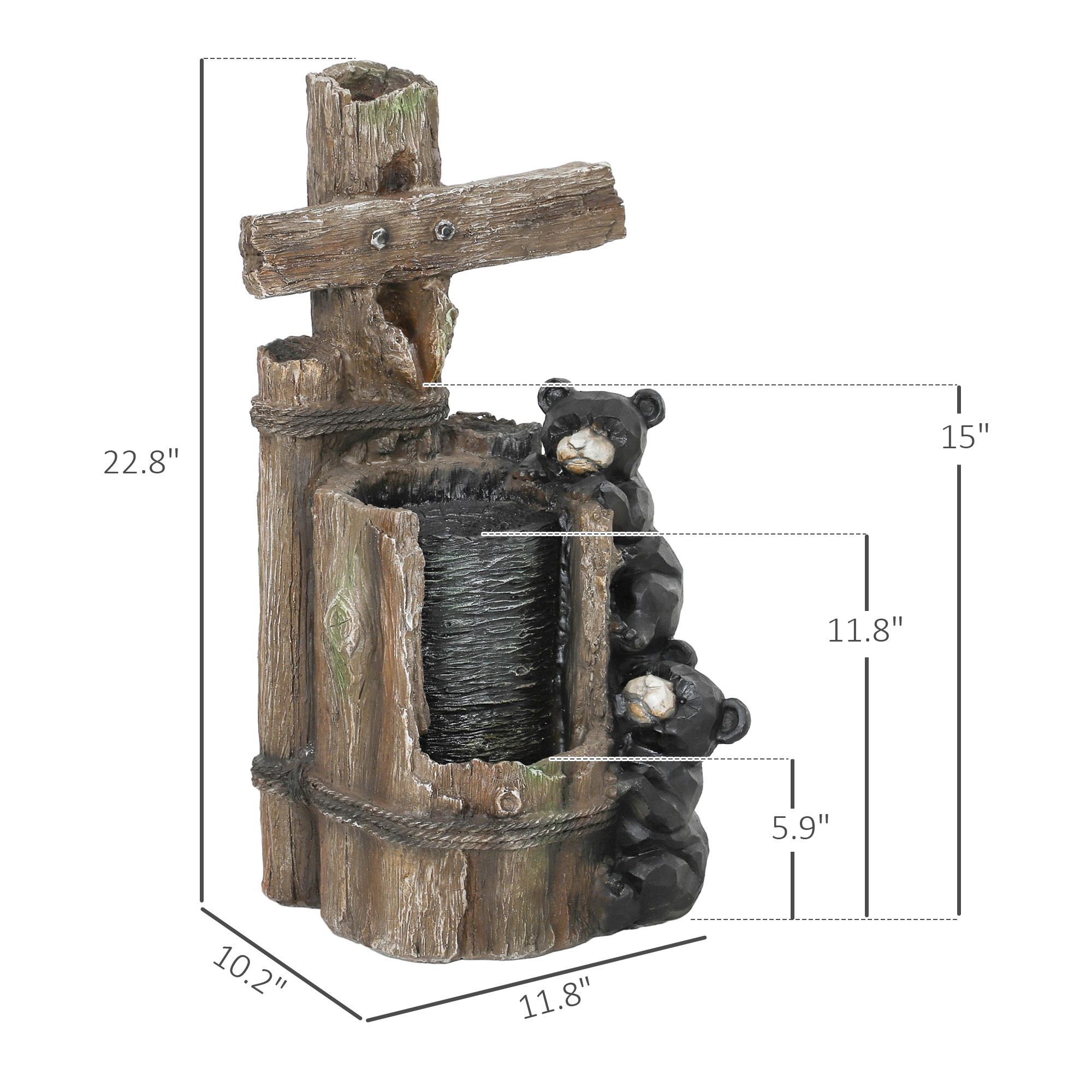 Home > Outsunny 22.8" Water Fountain, 3-Tier Resin Bears on Log Outdoor Waterfall Fountain with LED Lights, Pump