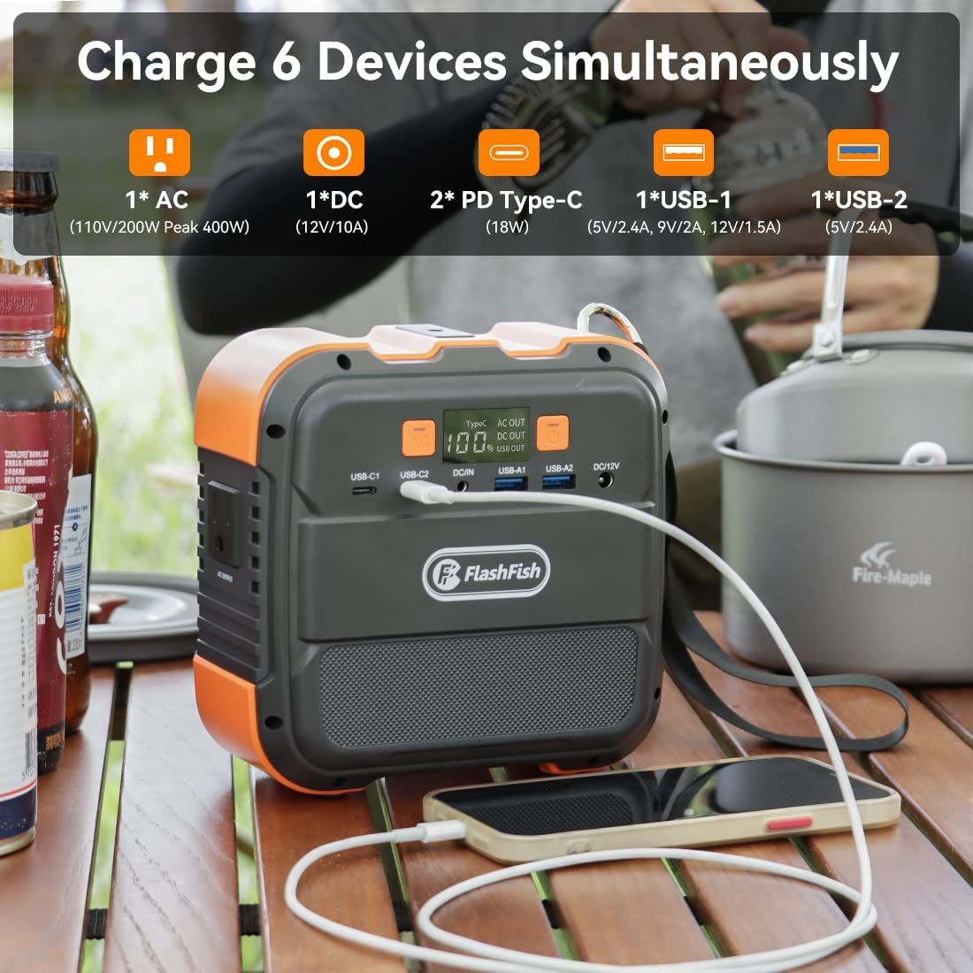 Flashfish Mini - The Most Lightweight Power Station Under 100Wh- With Rated 120W AC &98Wh/26400mAh Capacity