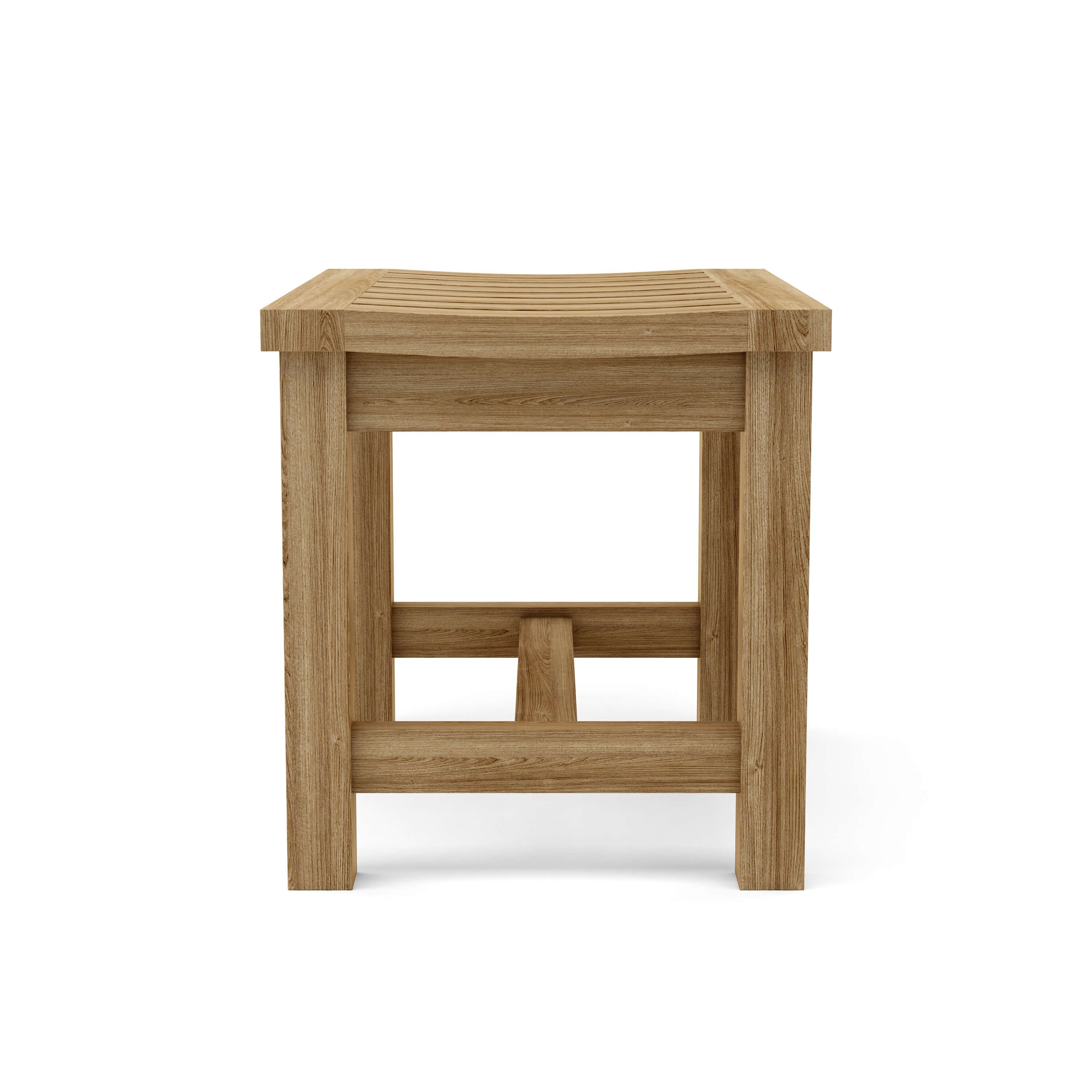 Unlike our benches and chairs with backs, the lowest point in this seat’s curve is directly in the center, allowing you to face in either way. This backless chair can also be used for seating at our rectangular dining table or in area where a bench with a back would be just too tall. Perfect for Spa or shower area. Made with kiln-dried, grade A plantation grown teak. Some assembly required. Instructions and all necessary parts included. Made from the finest solid teak, which is strong and durable. For more comfort add Sunbrella cushions at your own color choice.