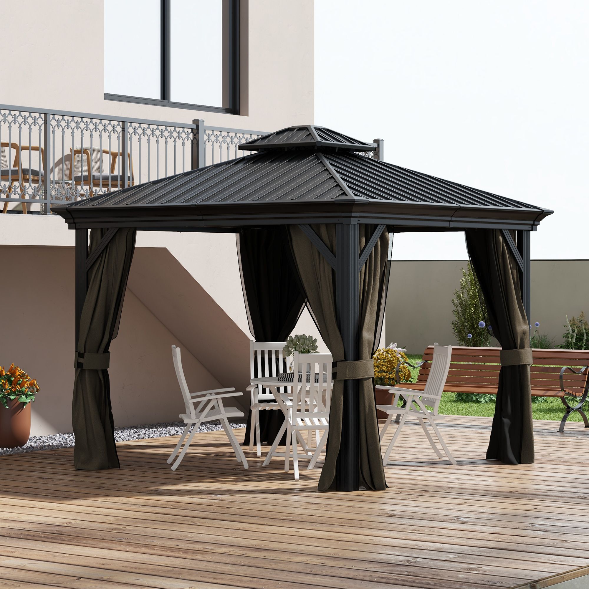 Additions, renovation, and thoughtful design can instantly raise any home's value. Installing a metal hardtop gazebo is an excellent way to renovate your property, providing form and function. Create a unique, versatile space where guests can gather for parties, picnics, and events. Outsunny's metal gazebo offers sun, wind, and rain protection. Sidewalls keep out unwanted winged things and eliminate glare. When it comes to canopies, gazebos, and pergolas, a hardtop outdoes all.