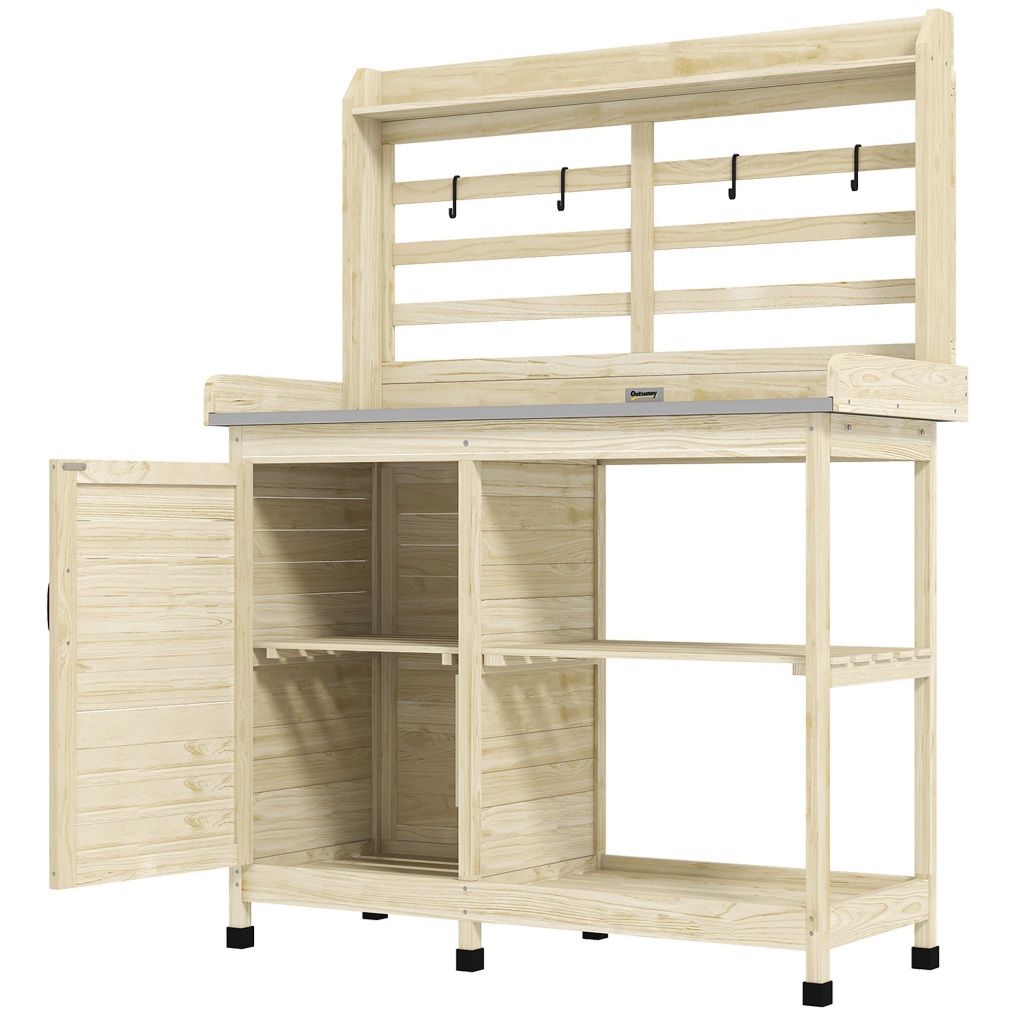 Outsunny potting station is a wonderful outdoor workstation for all your gardening needs. With a spacious work surface and large storage space, you will have plenty of space to carry out your gardening work. Equipped with a sink and a water tap, it is easy to carry out the gardening work and keep clean. Finished with a water-based paint, it can be placed outdoors but not afraid of sunlight and rain. With a country style, it will decorate your outdoor space and make you enjoyable when planting!