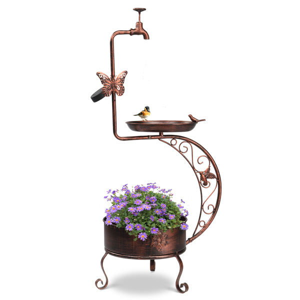 Elevate your garden's charm with this beautifully designed 36 inch vintage metal bird bath. This multifunctional birdbath not only provides a serene spot for birds to drink and bathe but also features a solar-powered lamp that adds a warm, inviting glow to your garden at night. The base doubles as a planter, allowing you to enhance the bath's beauty with your favorite flowers. Crafted from durable, rustproof metal, this bird bath is both a practical and decorative addition to any outdoor space, making it a perfect haven for birds and a delightful focal point for bird lovers.