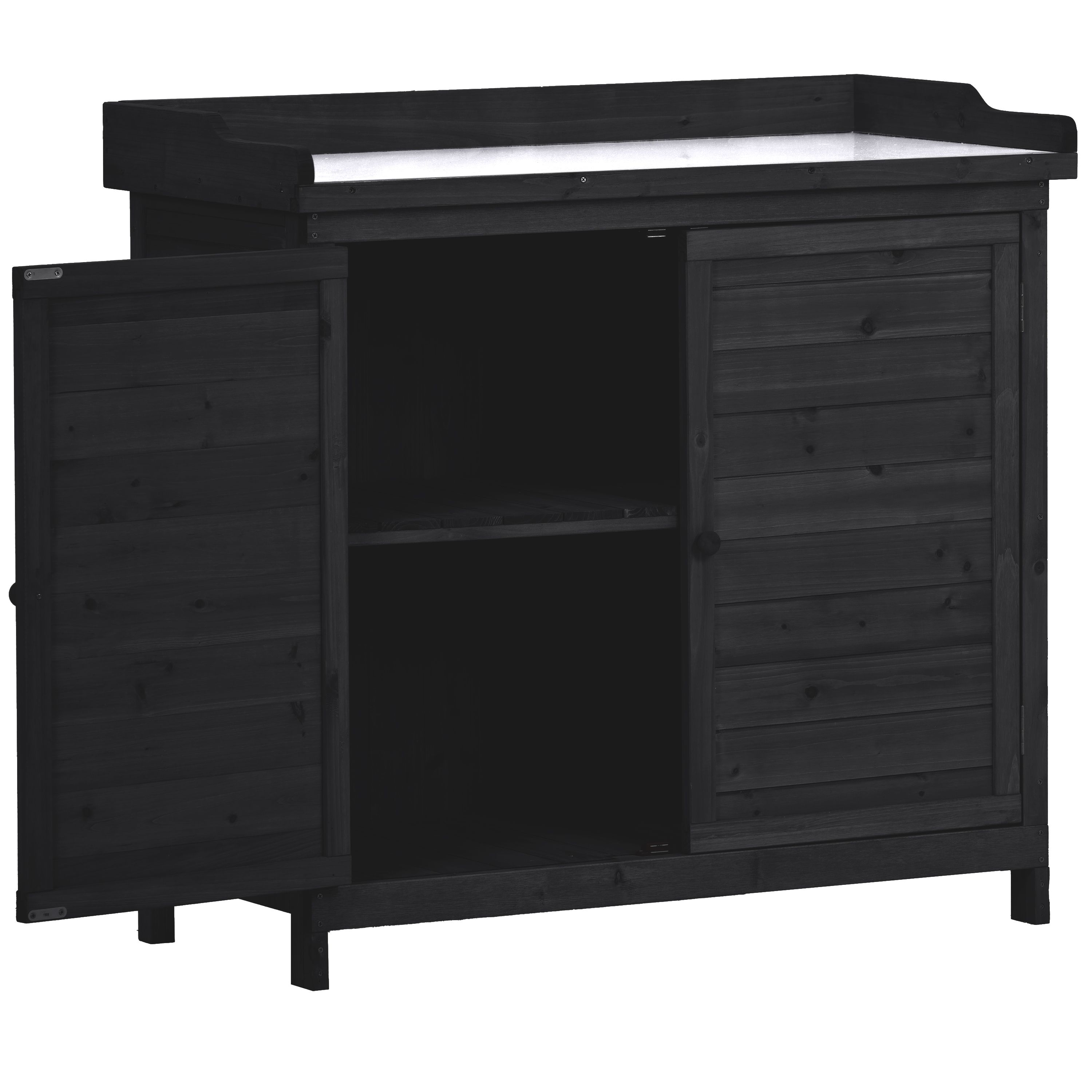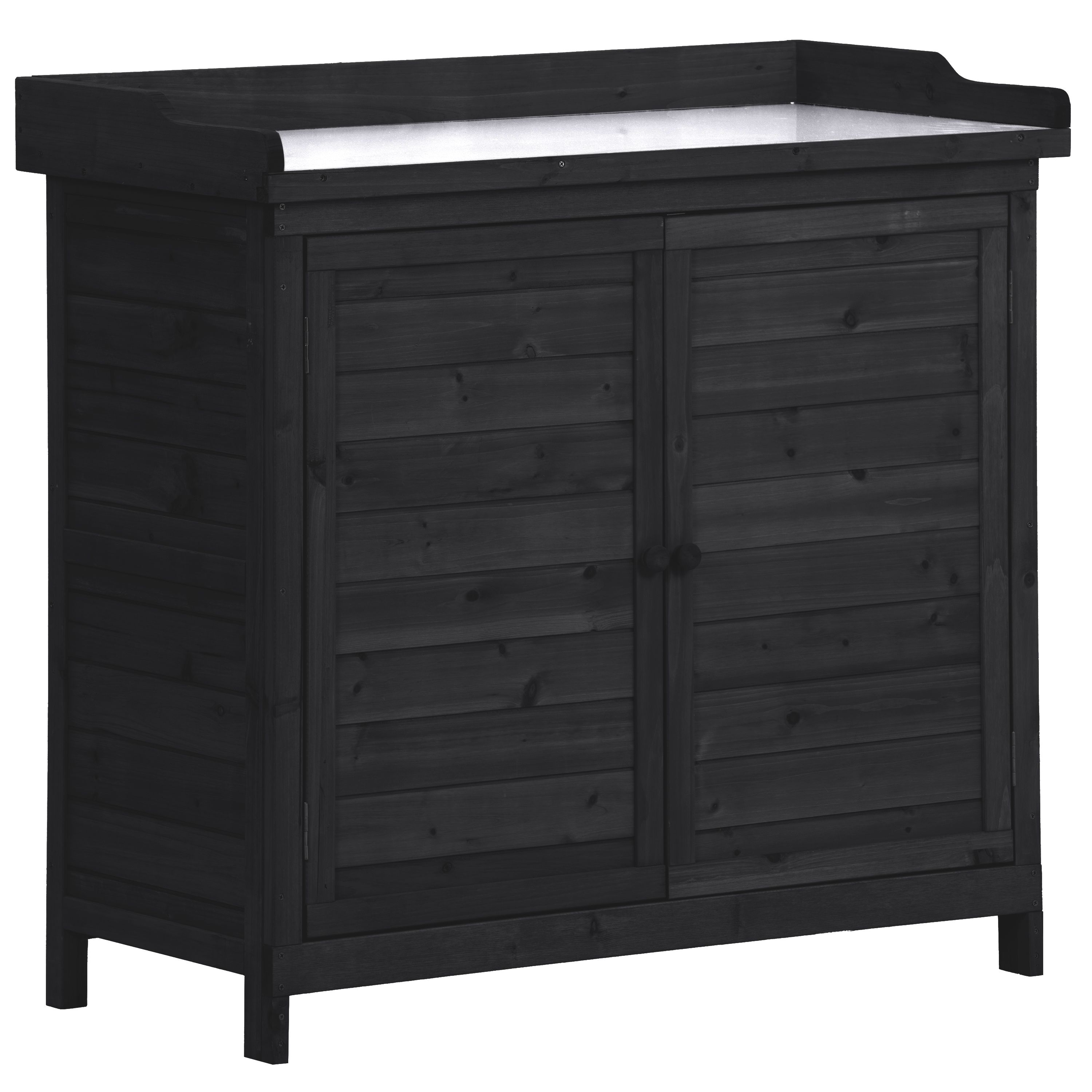 Ample 2-Tier Storage CabinetIf you are a big fan of gardening; this potting bench will be a great choice. With 37.4" total height; 2 ample storage shelves are designed to keep your tools handy and in one place without bending over or squatting. Constructed with a removable shelf; this potting table is ample enough for not only small tools but also extra soil; pots and other gardening supplies.