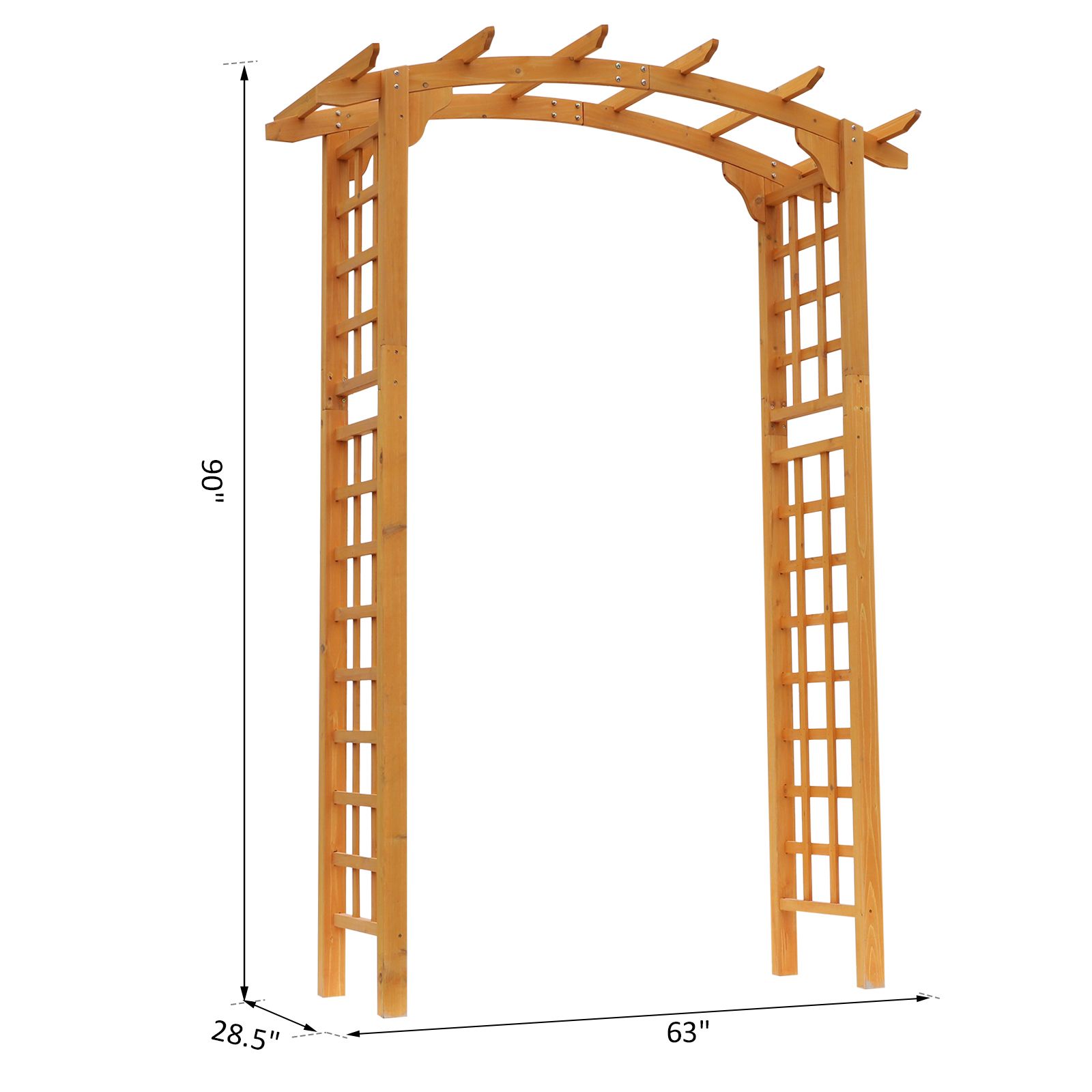 The classic design of our Outsunny wooden arbor arch offers a no-stress way to add an elegant outdoor feature to your garden setting. Use it daily as an attractive archway for climbing vines hanging plants and fruits and vegetables or decorate it with flowers or balloons for weddings and other special events.