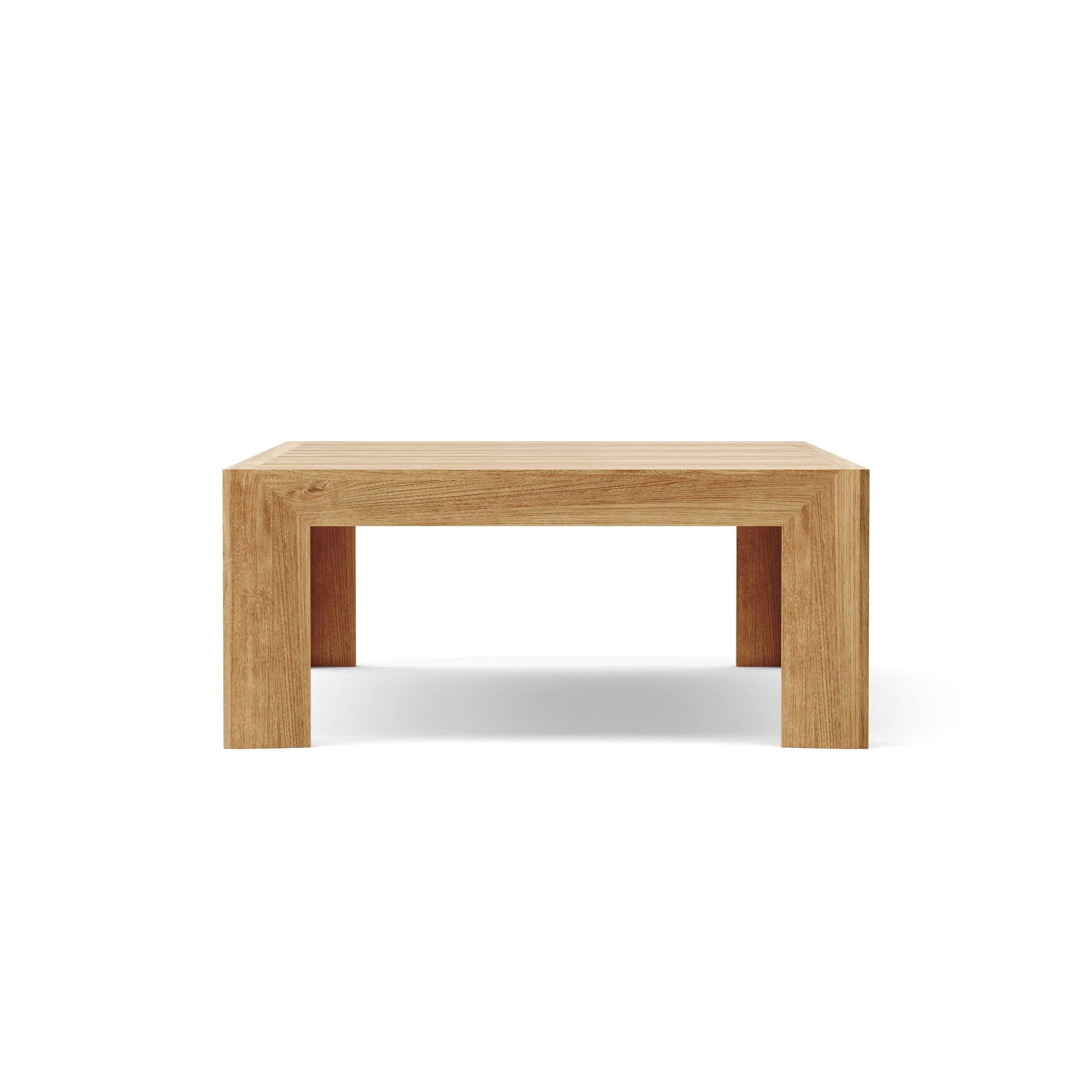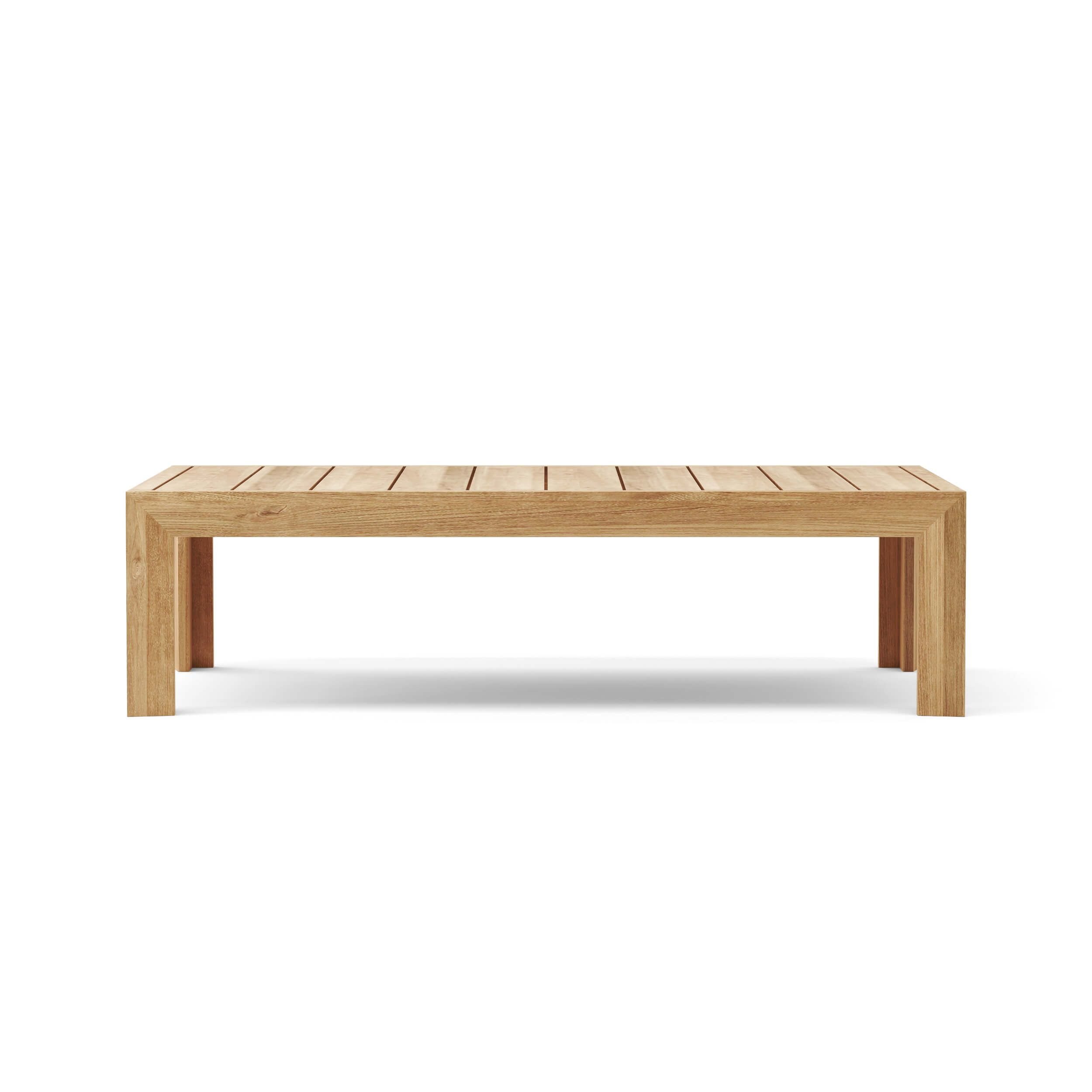 A sturdy coffee table with large wide slats the Smyrna coffee table made of premium unfinished teak is a lovely addition for the living room, home or yard. As part of the Smyrna Collection this coffee table pairs perfectly with the Smyrna Lounge Armchair, Sofa, Lounger, Dining Table and Dining Armchair.
