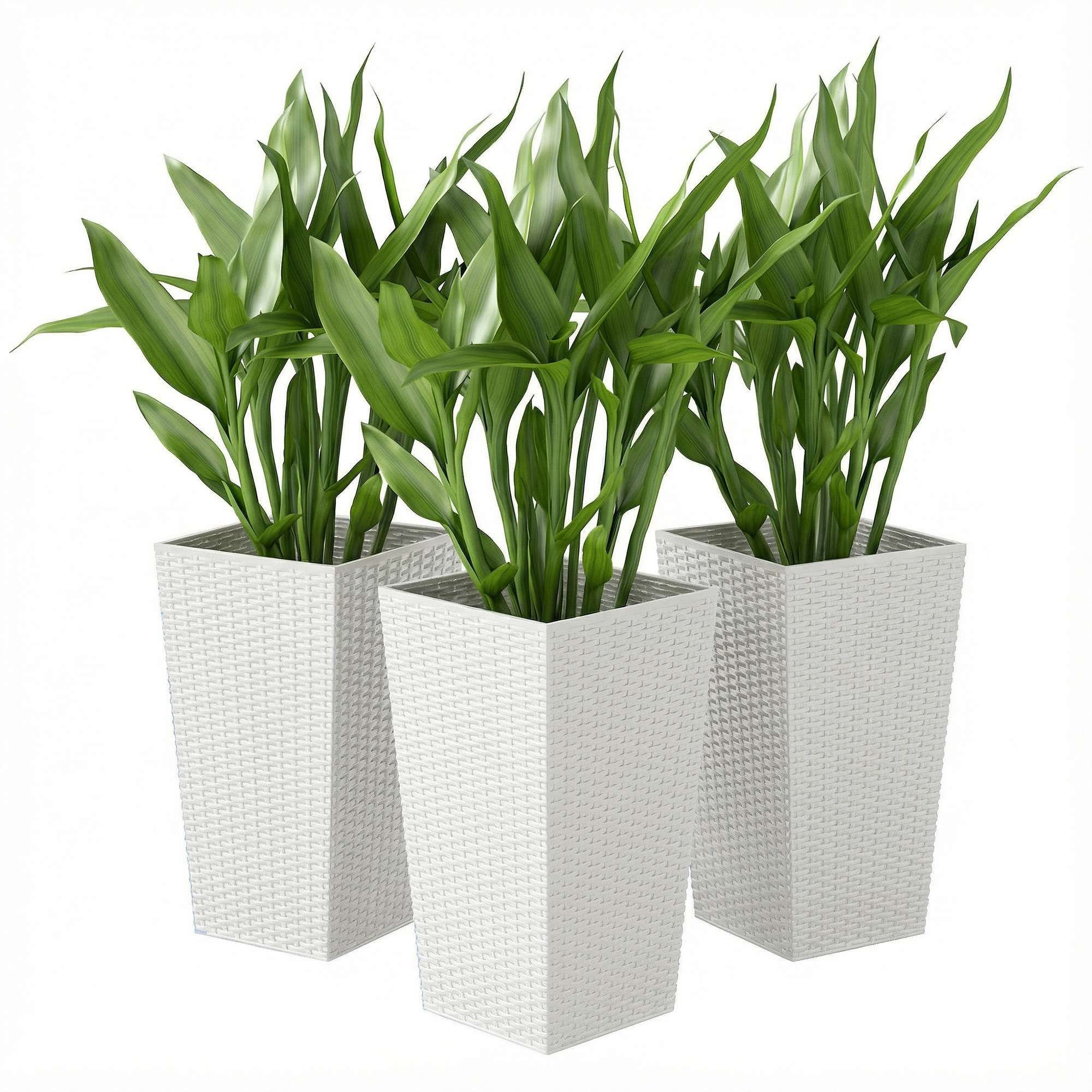 Tall Planters for Outdoor Plants Set of 3, 24 In Taper Planters with Drainage Holes, Rattan Decor Plant Pots, White Tall Planters for Outdoor Plants Set of 3, 24 In Taper Planters with Drainage Holes, Rattan Decor Plant Pots, White Tall Planters for Outdoor Plants Set of 3, 24 In Taper Planters with Drainage Holes, Rattan Decor Plant Pots, White
